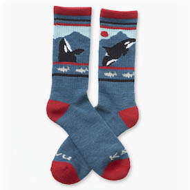 SEATTLE – New for fall 2019, the Orca Sock from KAVU will benefit the Center for Whale Research (CWR), the leading voice for the gravely endangered southern resident killer whales (orcas). The Orca Sock features rad killer whale patterns in a wool/synthetic blend, and 20 percent of the profits from their sales will go toward the study and conservation of orcas.