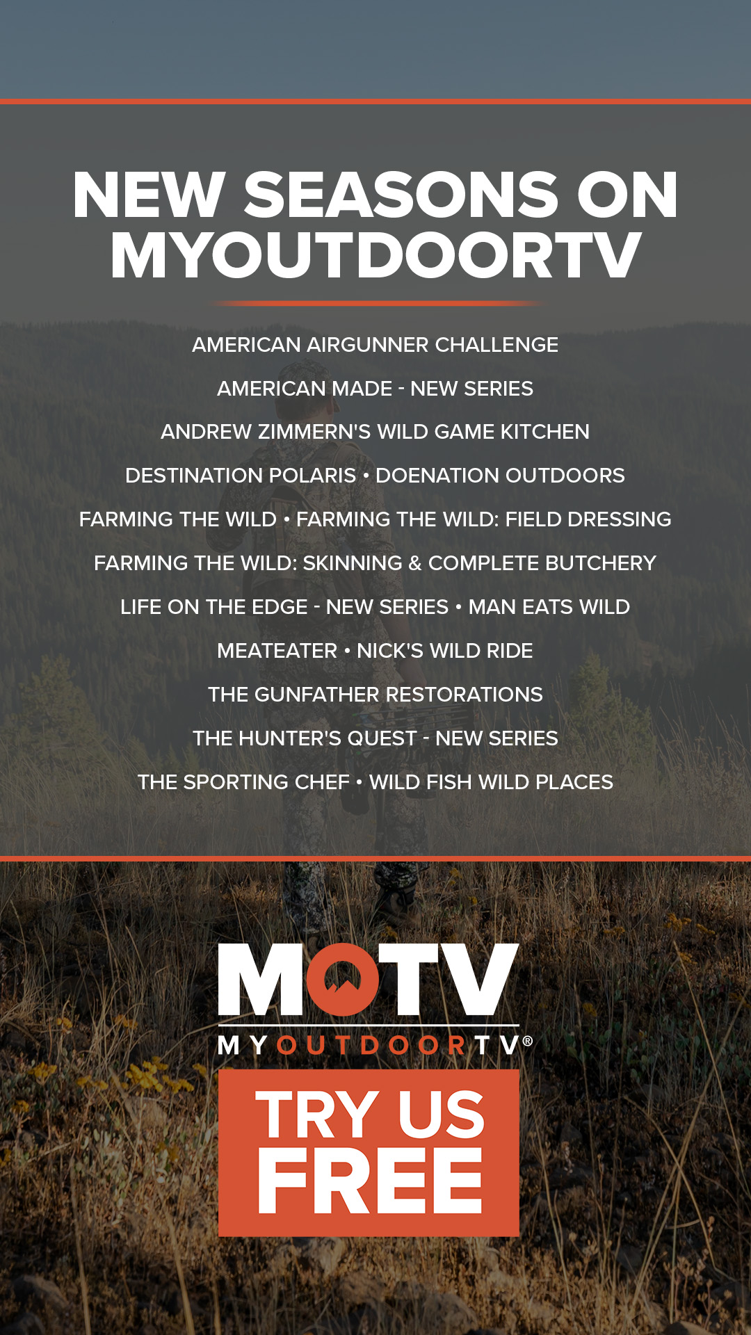 DENVER (Janaury 12, 2024) /OUTDOOR SPORTSWIRE/ – MyOutdoorTV is dropping another exciting lineup of new shows at MyOutdoorTV.com. Nearly 20 seasons are premiering now for viewers to watch the world’s most extensive, popular, and exclusive collection of outdoor lifestyle programming. MOTV is Outdoor Sportsman Group’s No. 1 global subscription streaming platform.