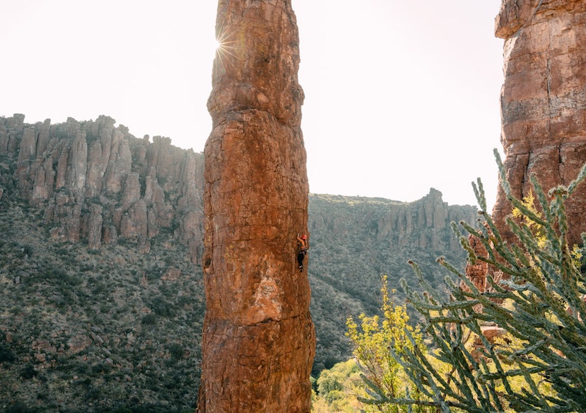 Photo Caption: Climbing at Oak Flat, ancestral lands of Apache, Akimel O’odham (Upper Pima) and Hohokam. © Taylor Burk