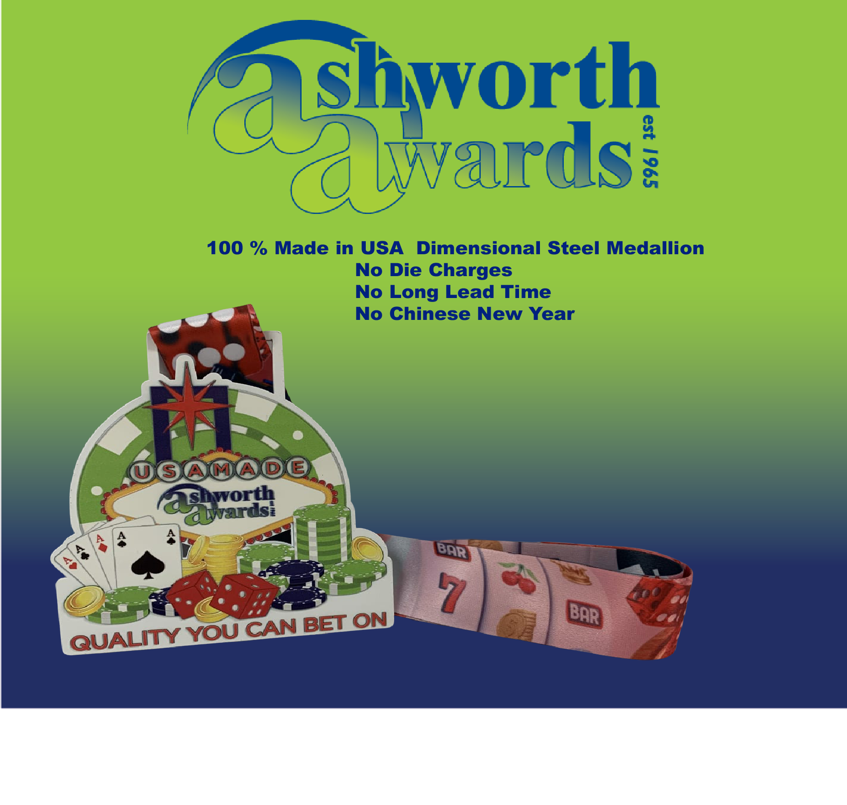 North Attleboro, MA – Ashworth Awards announces the launch of its brand new sustainable 100% Made in USA Dimensional steel medallion and award product line. The new products are made from recycled steel that is fabricated completely in the United States. It needs to be seen to be truly appreciated!