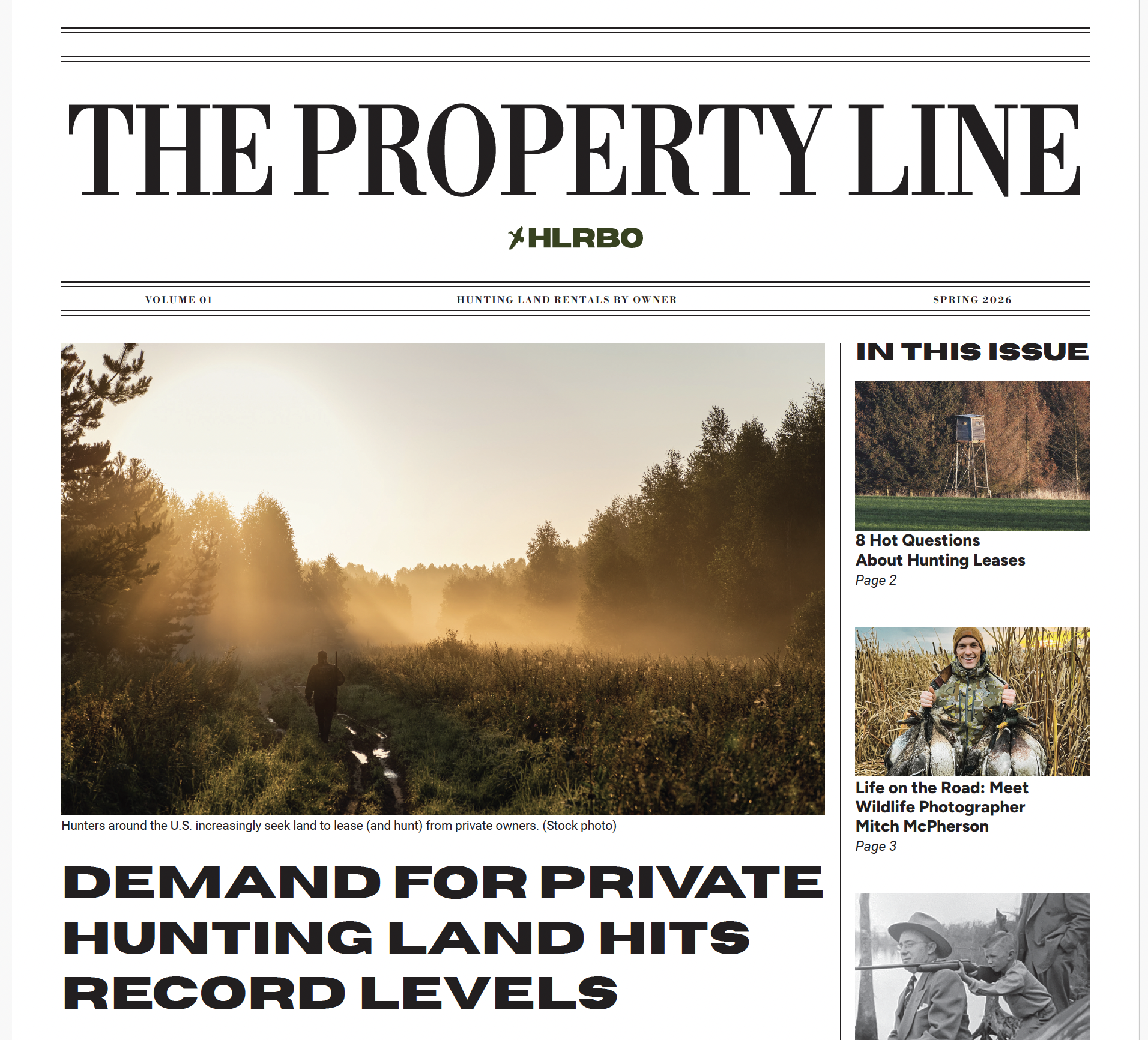 Distribution of The Property Line will target a curated list of landowners identified by HLRBO as a strong fit for its marketplace and lease platform. In addition, the newspaper will be seeded throughout small towns across the country by a network of HLRBO field representatives embedded in those communities.