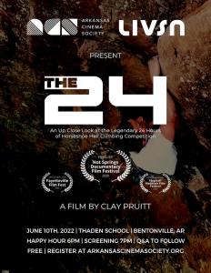 BENTONVILLE – June 6, 2022 /OUTDOOR SPORTSWIRE/ - Arkansas Cinema Society (ACS) returns to Thaden School in Bentonville on Friday, June 10th for an Arkansas Filmmaker Spotlight on Fort Smith documentarian Clay Pruitt with a special presentation of his film, The 24, about the 24 Hours of Horseshoe Hell endurance...